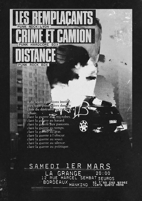 Accueil > Évènements en Aquitaine > Les Remplaçants + Crime et Camion + Distance à la Grange