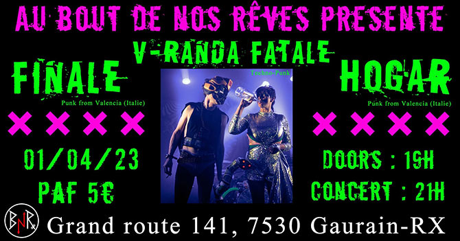 Accueil > Évènements en Belgique > V-randa Fatale + Finale + Hogar au BnR