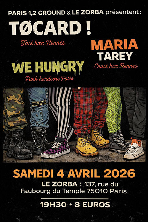 Accueil > Évènements en Ile-de-France > TOCARD ! + MARIA TAREY + WE HUNGRY au Zorba