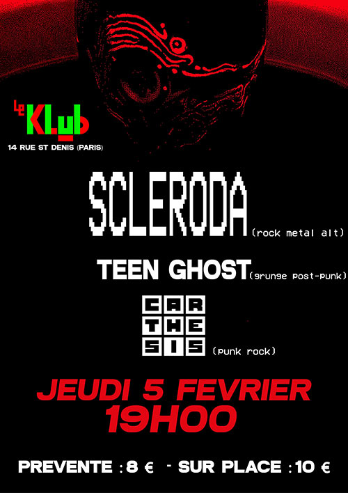Accueil > Évènements en Ile-de-France > Scleroda x Teen Ghost x Carthesis @ le Klub