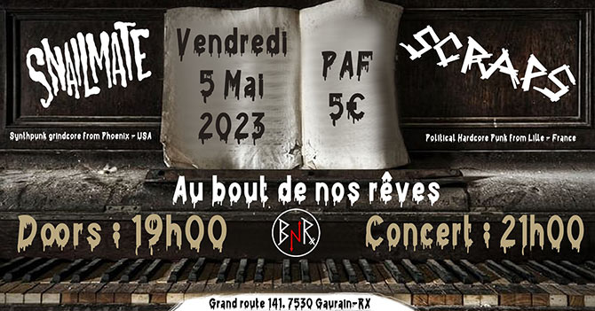 Accueil > Évènements en Belgique > Snailmate + Scraps au BnR