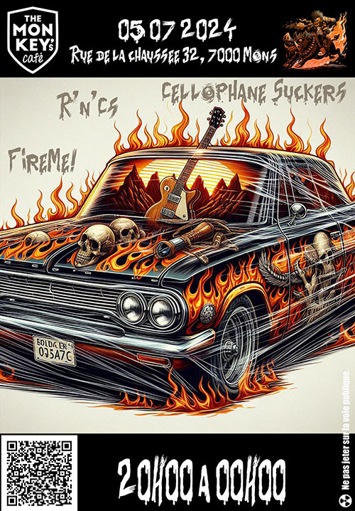 Accueil > Évènements en Belgique > Cellophane Suckers + Fire Me! + R'n'Cs @ The Monkey's Café