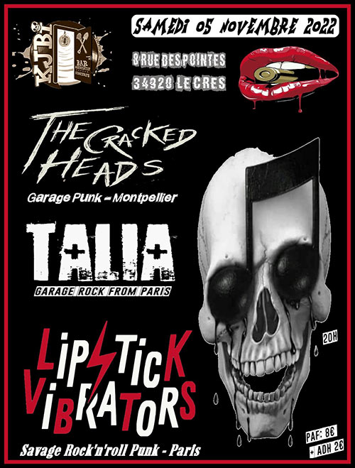 Accueil > Évènements en Languedoc-Roussillon > Lipstick Vibrators + Talia + The Cracked Heads au KJBi