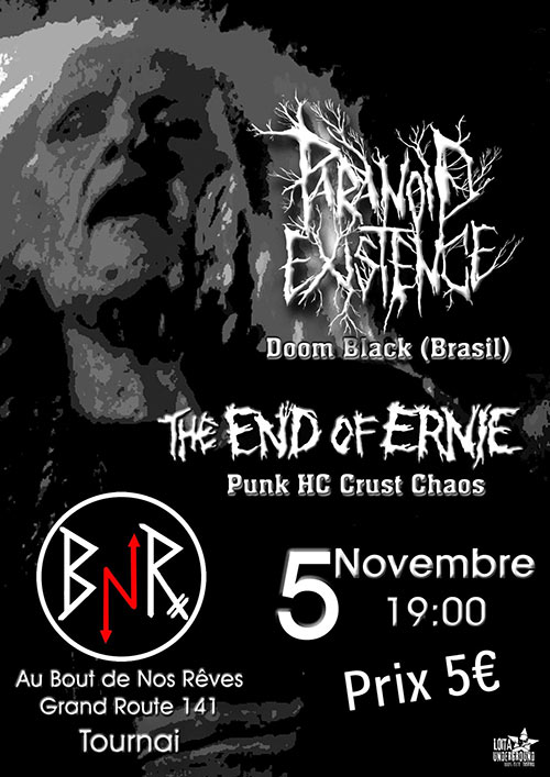Accueil > Évènements en Belgique > Paranoid Existence + The End Of Ernie au BnR