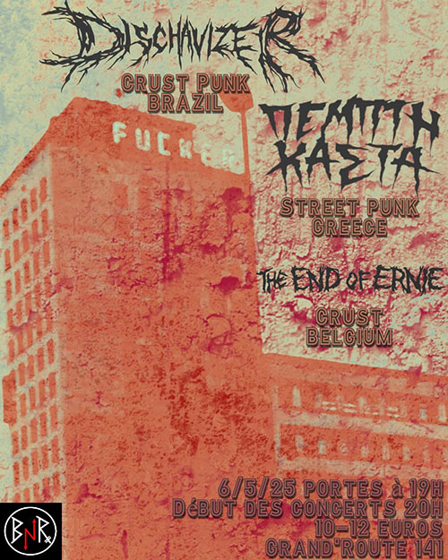 Accueil > Évènements en Belgique > Dischaviser + Pempti Kasta + The End of Ernie au BnR