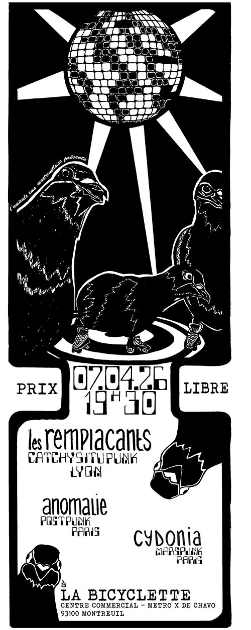 Accueil > Évènements en Ile-de-France > Les Remplaçants + Anomalie + Cydonia à la Bicyclette