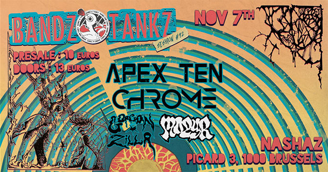 Accueil > Évènements en Belgique > BANDZ AND TANKZ #12 with Apex Ten + Chrome + Gorgonzilla + Moeyr