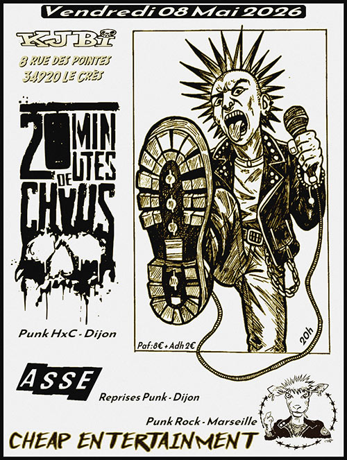 Accueil > Évènements en Languedoc-Roussillon > 20 Minutes de Chaos + ASSE + Cheap Entertainment au KJBi