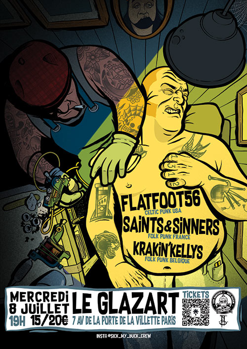 Dice : https://dice.fm/event/py9br8-flatfoot-56-krakin-kellys-saints-sinners-8th-jul-glazart-paris-tickets