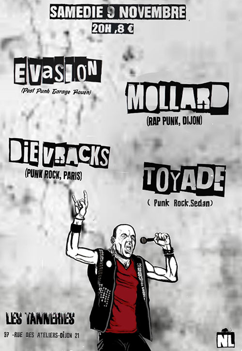 Accueil > Évènements en Bourgogne > Evasion + Mollard + Toyade + Die Vräcks aux Tanneries