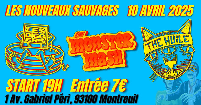 Accueil > Évènements en Ile-de-France > Les Diggers + The Huile + Les Monster Mash aux Nouveaux Sauvages