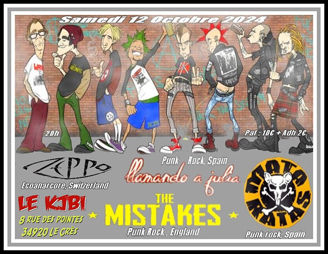Accueil > Évènements en Languedoc-Roussillon > The Mistakes + Mata Ratas + Llamando A Julia + Zeppo au KJBi