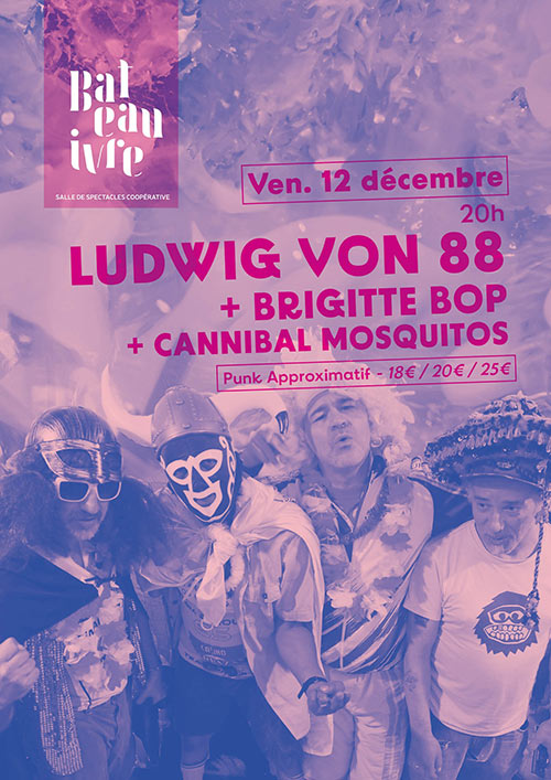 Accueil > Évènements en Centre > Ludwig von 88 + Brigitte Bop + Cannibal Mosquitos au Bateau Ivre