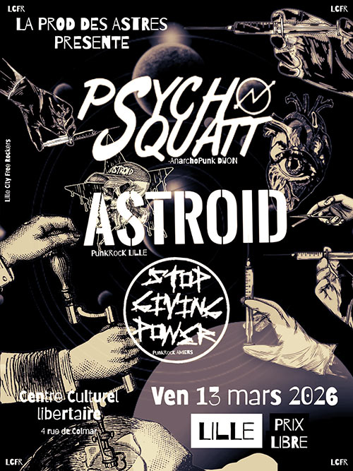 Accueil > Évènements en Nord-Pas-de-Calais > PSYCHO SQUATT + ASTROÏD + STOP GIVING POWER