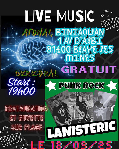Accueil > Évènements en Midi-Pyrenees > Concert Lanisteric + Atonal Cérébral