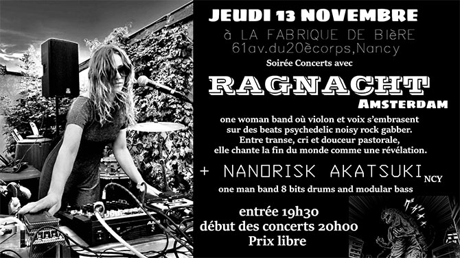 Accueil > Évènements en Lorraine > RAGNACHT (Amsterdam) + NANORISK AKATSUKI à la Fabrique de Bières