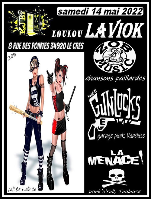 Accueil > Évènements en Languedoc-Roussillon > Loulou Laviok + Thee Gunlocks + La Menace ! au KJBi