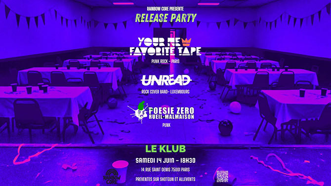 Les YOUR NEW FAVORITE TAPE (Punk Rock) vous attendent nombreux au Klub le 14 juin pour la release party de leur album Twenty Years Too Late sorti le 21 mars dernier !