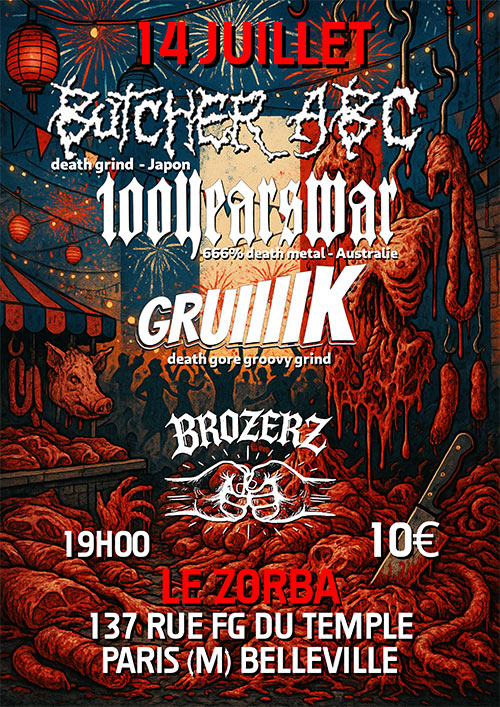 Accueil > Évènements en Ile-de-France > BUTCHER ABC (Jap.) + GRUIIIIK + BROZERZ + 100 YEARS WAR (Aus.)