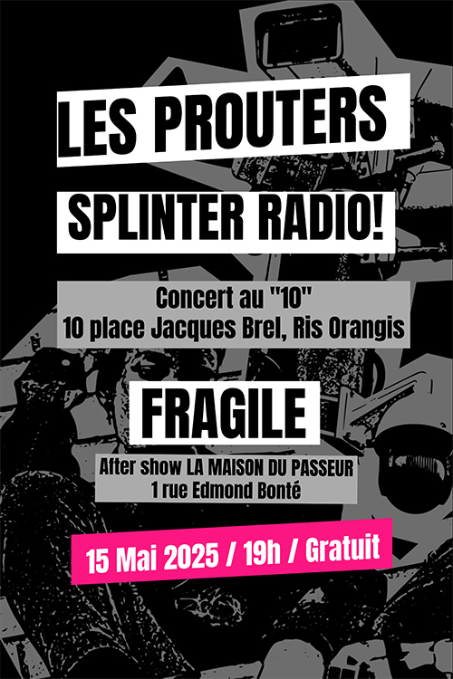 Accueil > Évènements en Ile-de-France > LES PROUTERS + SPLINTER RADIO! + FRAGILE