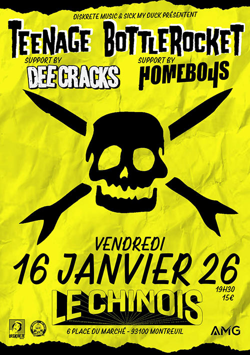 Accueil > Évènements en Ile-de-France > Teenage Bottlerocket + Dee Cracks + Homeboys au Chinois