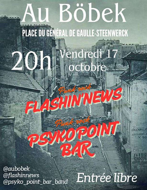 Accueil > Évènements en Nord-Pas-de-Calais > Flashin' News + Psyko Point Bar au Bôbek