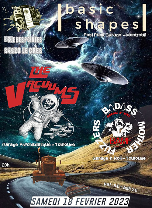 Accueil > Évènements en Languedoc-Roussillon > Basic Shapes + The Vacuums + Badass Mother Fuzzers au KJBi
