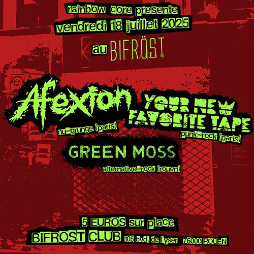 Afexion & Your New Favorite Tape vous retrouvent le 18 juillet au Bifrost à Rouen pour une soirée punk, nu-grunge explosive !