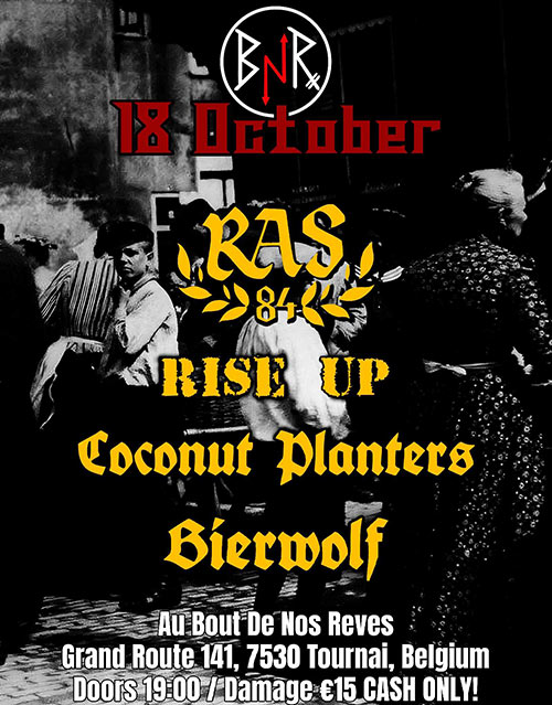Accueil > Évènements en Belgique > R.A.S. 84 + Rise Up + Coconut Planters + Bierwolf au BnR