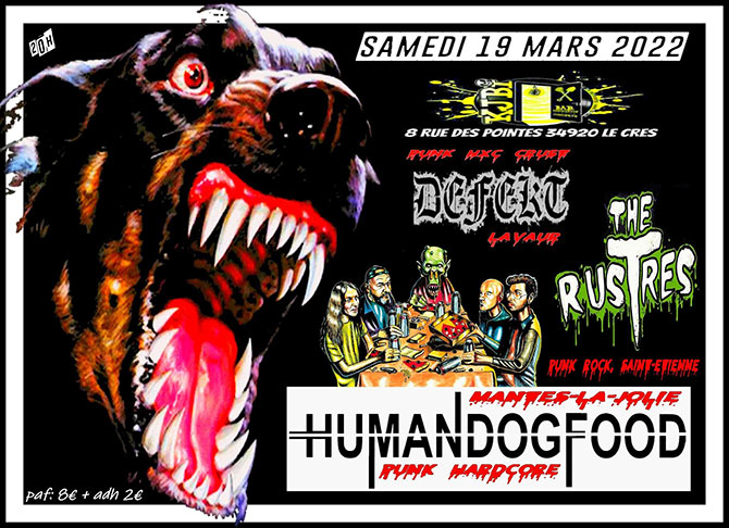 Accueil > Évènements en Languedoc-Roussillon > HumanDogFood + The Rustres + Defekt au KJBi
