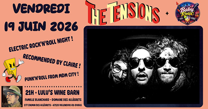 Accueil > Évènements en Aquitaine > THE TENSIONS + BABY TONIC AU LULU'S WINE BARN