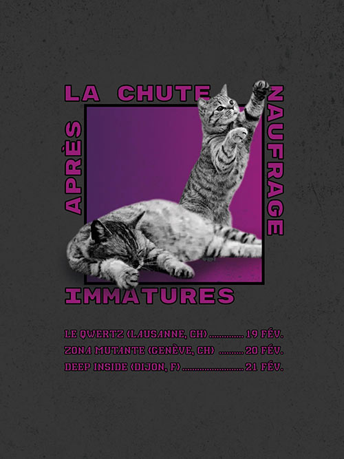 On passera par Lausanne 🇨🇭, Genêve 🇨🇭, et Dijon 🇫🇷 avec Immatures, Après La Chute et Naufrage du 19 au 21 Février.