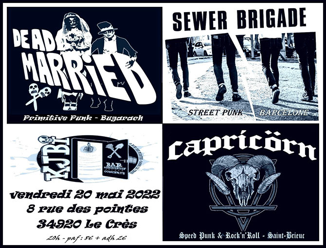 Accueil > Évènements en Languedoc-Roussillon > Sewer Brigade + Capricörn + Dead Married au KJBi