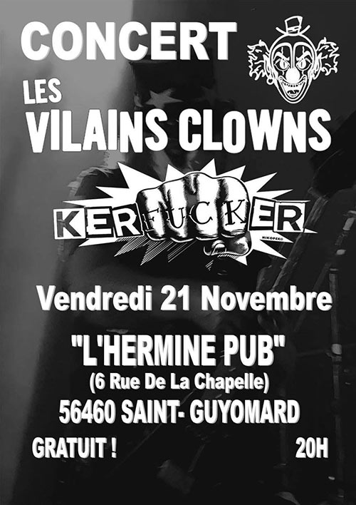 Accueil > Évènements en Bretagne > Les Vilains Clowns + Kerfucker à l'Hermine Pub