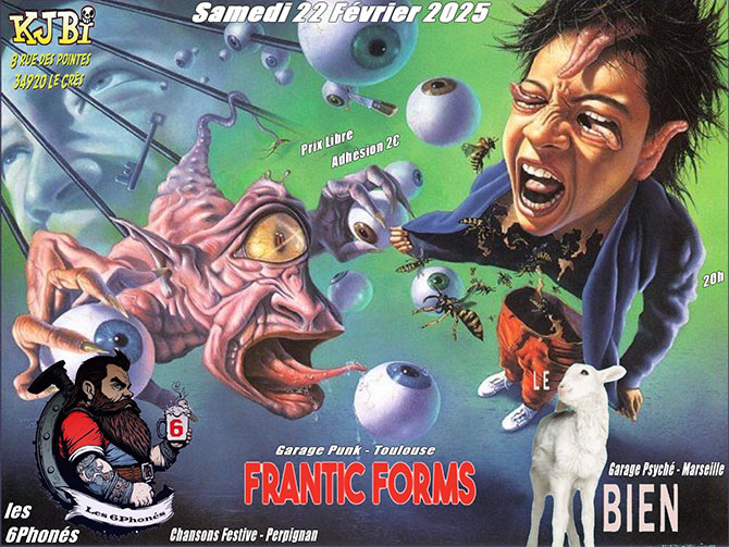 Accueil > Évènements en Languedoc-Roussillon > Frantic Forms + Le Bien + Les 6Phonés au KJBi