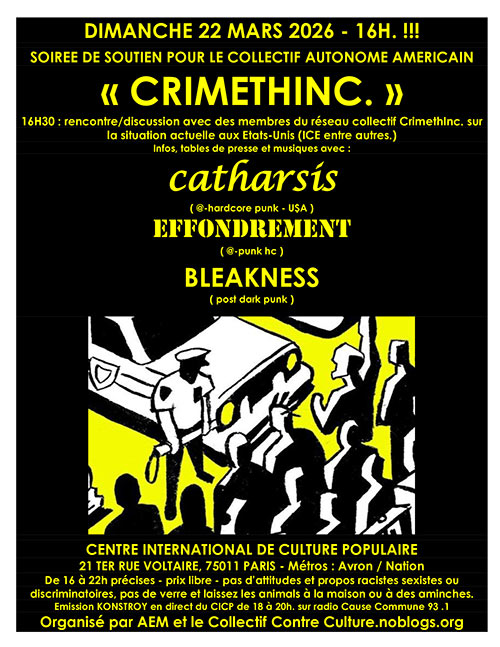 SOIRÉE DE SOUTIEN POUR LE COLLECTIF AMÉRICAIN "CRIMETHINC."
