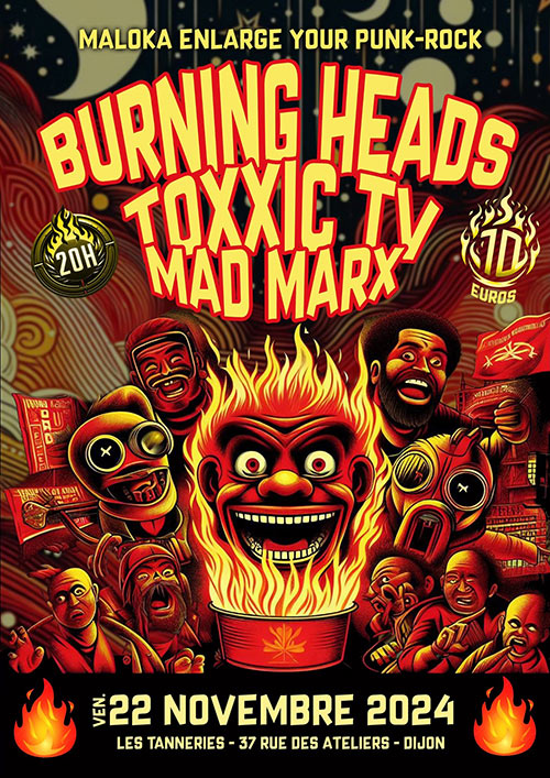 Accueil > Évènements en Bourgogne > Burning Heads + Toxxic TV + Mad Marx aux Tanneries