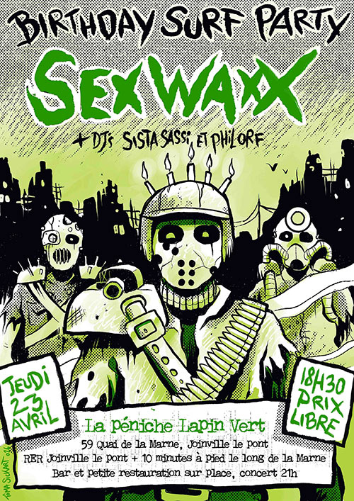 Jeudi 23 Avril je fête mes 50 piges!... Pour ça, on va faire un concert de Sex Waxx sur la péniche Lapin Vert à Joinville Le Pont!...