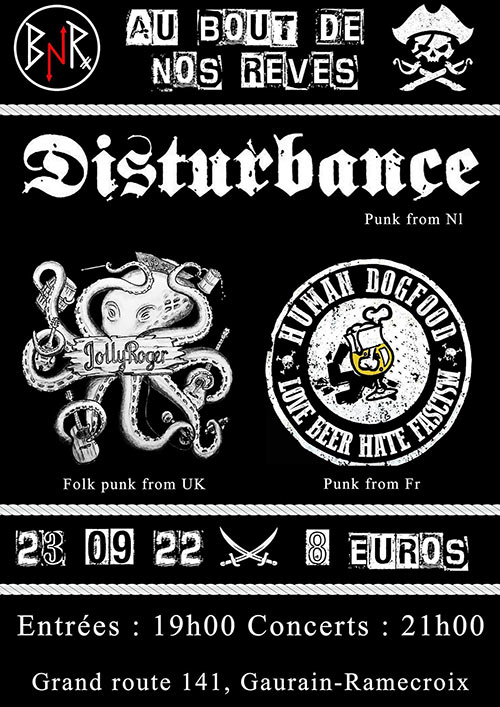 Accueil > Évènements en Belgique > Disturbance + JollyRoger + Human DogFood au BnR