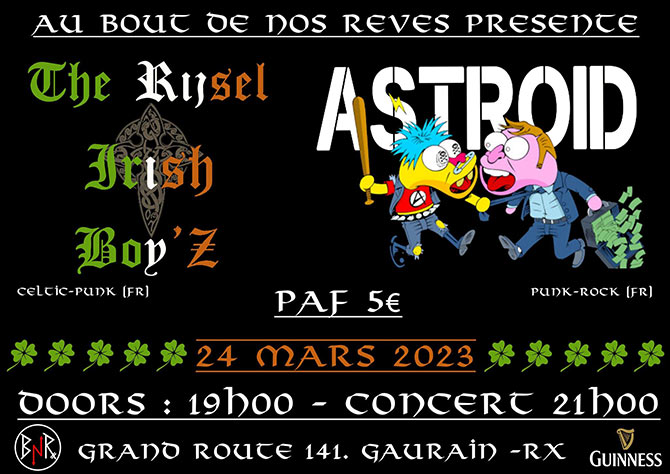 Accueil > Évènements en Belgique > The Risjel Irish Boy'Z + Astroïd au BnR
