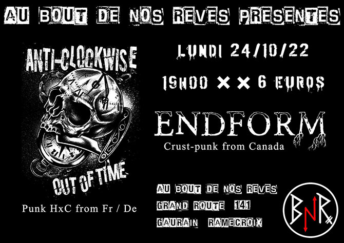 Accueil > Évènements en Belgique > Anti-Clockwise + Endform au BnR