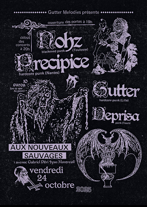 Accueil > Évènements en Ile-de-France > Nohz + Precipice + Gutter + Deprisa aux Nouveaux Sauvages