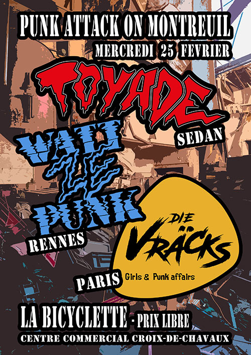 Accueil > Évènements en Ile-de-France > Punk Attack on Montreuil - Die Vräcks / Toyade / Watt Ze Punk
