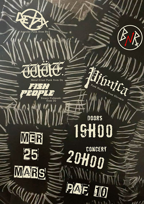 Accueil > Évènements en Belgique > Pivnica + Wüt + Detax + Fish People au BnR