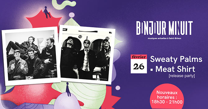 Une vague électrisante va déferler et personne ne pourra contrôler cette énergie : Meat Shirt arrive sans prévenir et c'est le wipe out général. Du Punk ? du Hardcore ? du Garage ? Peu importe, c'est juste la bonne dose de spontanéité dont vous avez besoin. Le tout parsemé d'influences des scènes hardcore punk californiennes et texanes des années 80, ainsi que du mouvement psyché. Formé courant 2022 à Saint-Brieuc, le trio sort son nouvel EP "Acid Dove" sur Destructure Records en France. Un opus qui rassemble sept tisons implacables dotés d'une énergie singulière. Cette date à Bonjour Minuit sera l'occasion d'en fêter la sortie !