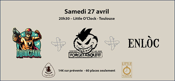 Accueil > Évènements en Midi-Pyrenees > Drunktank + Forgetaboutit + Enlòc @ Little O'Clock