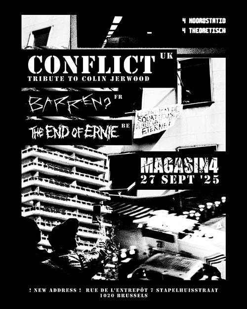 Accueil > Évènements en Belgique > Conflict - Tribute to Colin Jerwood au Magasin 4