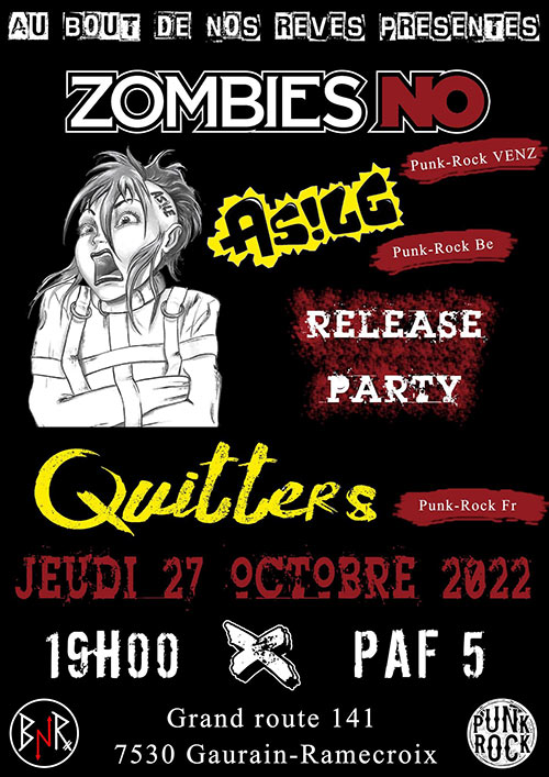 Accueil > Évènements en Belgique > ZombiesNO + Asile + Quitters au BnR