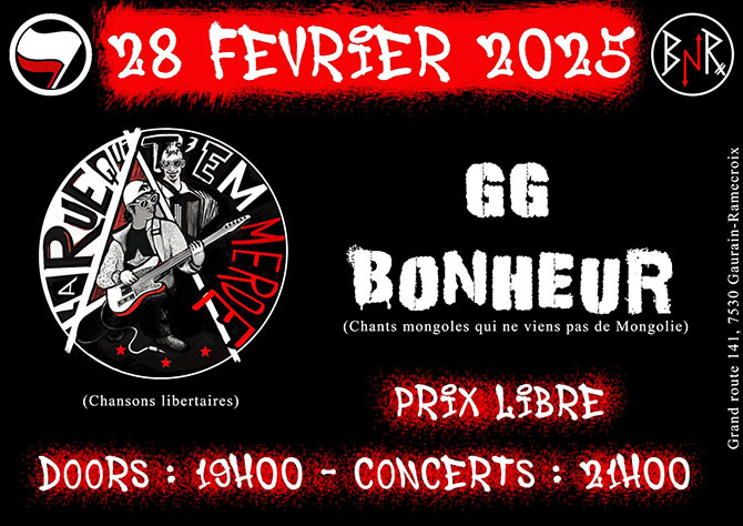 Accueil > Évènements en Belgique > La Rue qui t'Emmerde + GG Bonheur au BnR