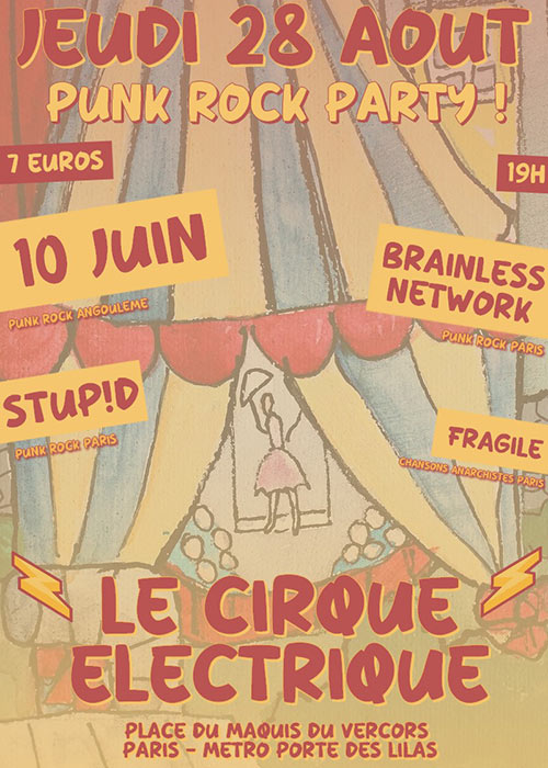Accueil > Évènements en Ile-de-France > 10 JUIN - STUP!D - BRAINLESS NETWORK - FRAGILE @ CIRQUE ÉLEC.